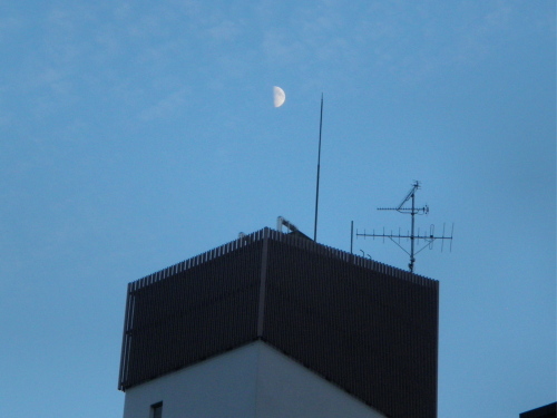 9月10日17:45分に撮ったもの 夕月の空まだ青し歩きけりきょうは十五夜で、月の出は16:51 月の入は3:17 月齢13.7 ということで十五夜と言っても満月ではありません。暦には満月は2日後の17日とあります。朝から曇っていますので、名月ではなく無月ということになります。がっかりしますね。 クリックしてね ↓ 人気ブログランキングへ 俳句・秋・天文、夕月