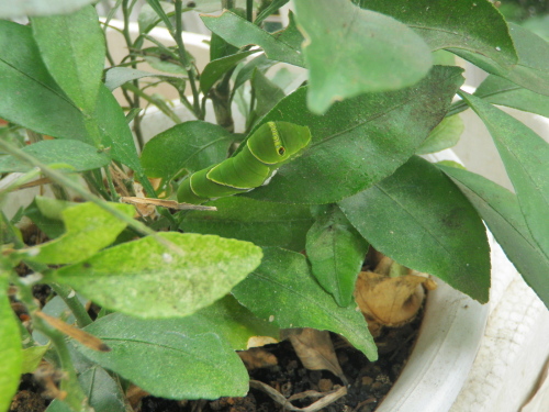 九月も終わりの今日、久し振りに晴れました。ベランダには揚羽蝶の青虫が元気に夏蜜柑の葉っぱを食べています。葉っぱを沢山食べ揚羽蝶になって大空へ飛びたってゆく。 ベランダに青虫三つ九月尽 クリックしてね ↓ 人気ブログランキングへ 俳句・秋・人事、九尽