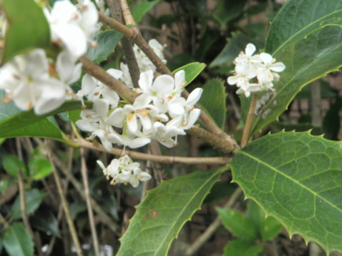 野川沿いのマンションに柊垣があり花を咲かせている。目立たない花なので、大方の人は気づかない。私が毎日散歩している野川サイクリング道路は歩行者優先であるが喜多見駅へ出る1本道でもあり、通勤者が利用している。他にジョギングや犬の散歩、かわせみを撮るカメラマン等が利用している。 犬に背を向け柊の花を愛づ クリックしてね ↓ 人気ブログランキングへ 俳句・冬・植物、柊の花