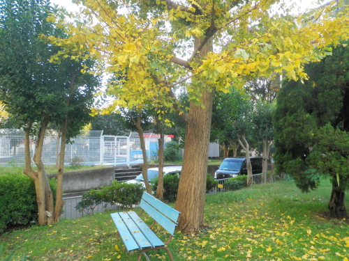 我が家のベランダから見える広場の銀杏の木の葉が黄色く色づき落葉し始めている。樹の側にあるベンチにも落葉が乗っている。私は落葉を手で掃いてベンチに座ってみた。銀杏大樹の黄葉頭の上に輝いていた。 手に触れしいてふ落葉に温みあり クリックしてね ↓ 人気ブログランキングへ 俳句・冬・植物、いてう落葉
