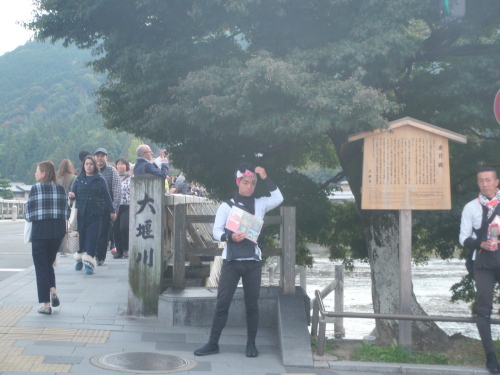 大堰川 渡月橋 大堰川野宮から10分も歩けば渡月橋に出る。人力車の兄ちゃんが橋詰めで声をかけている。大堰川の川幅が広いので渡月橋は長々と続く。生憎の曇り空であったが良いアングルで撮れたと思っている。<六月や峯に雲置くあらし山 芭蕉> と芭蕉が詠んだ嵐山の紅葉はまだ始まったばかりである。この光景を芭蕉ならどのように詠むのだろうと思った。 時雨月芭蕉は如何な句を詠むや クリックしてね ↓ 人気ブログランキングへ 俳句・冬・時候、時雨月、嵐山大堰川、渡月橋