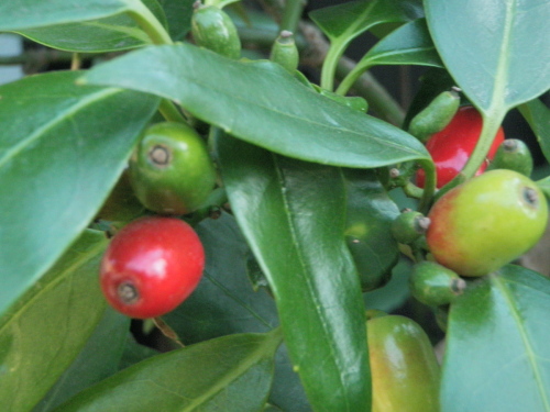 ほとんどの木の実は秋の季語とされてるが青木の実は冬の季語となっている。冬枯れのモノクロームな世界の中で、棗の形をした真っ赤な実が美しい。 青木の実一つ盗みて知らん顔 クリックしてね ↓ 人気ブログランキングへ 俳句・冬・植物、青木の実