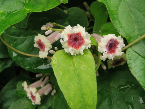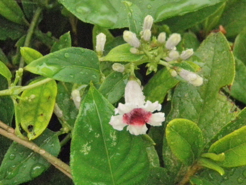 曇り日の涼しい朝を迎えました。網戸から風もあり、みんみん蝉も鳴いています。写真の花は灸花、花に臭気があるので「ヘクソカズラ」が正式名です。野川沿いの遊歩道の生け垣に咲いています。 雨粒は誰が涙か灸花 クリックしてね ↓ 人気ブログランキングへ 俳句・夏・植物、灸花・屁糞葛(へくそかづら)