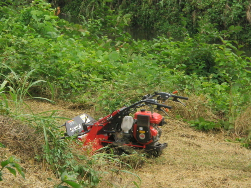 猛暑の中、野川の土手の草刈りが行われている。黙々ときびきびと草を刈っている職人の我慢強さを感じながら見て見ぬふりをして過ぎる。野川の水際はカワセミが巣を造ったり、草に止まって餌を捕るために草を刈らずにある。 草刈の男の背の燃ゆるかに クリックしてね ↓ 人気ブログランキングへ 俳句・夏・人事、草刈、野川