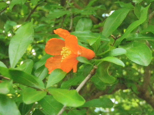 梅雨台風が福岡や大分県に豪雨をもたらした。ニュースを観る度に目を覆いたくなる惨事が映し出される。被災された方々にお見舞い申しあげます。当地は午後から西日が当たり厳しい暑さが続いている、熱中症にならないようこまめに水分を採っている。ベランダでは青虫が蛹になる場所をもとめて4匹が這っている。 花柘榴ペルシア色に咲きいでぬ クリックしてね ↓ 人気ブログランキングへ 俳句・夏・植物、柘榴の花・花柘榴