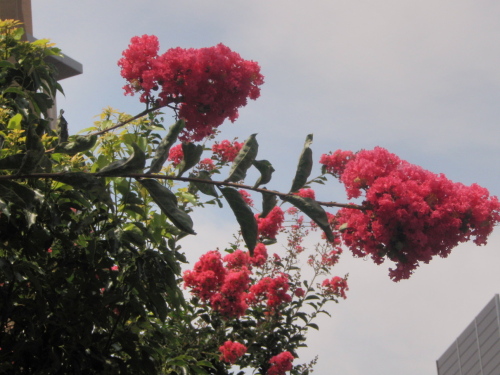 昨日二時過ぎのこと。バスを降りたとたん雨が降り出したので、所要のある建物まで200メートル程一目散に走った。その後は雷が何度も弾け、氷雨が降った。いよいよ梅雨明が明けるらしい。このところ百日紅(さるすべり)が勢いよく咲いている。数は少ないが白さるすべりも遠慮勝ちに風に揺れている。このところバスに乗る機会が多いので運動不足気味である。 歩くこと怠つてをり百日紅 クリックしてね ↓ 人気ブログランキングへ 俳句・夏・植物、百日紅(さるすべり)・白さるすべり