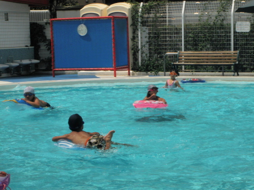 幼稚園や小学校が夏休みに入り、マンション管理の事業の一環としてプールの利用が始められました。8月31日まで無休です。1回300円くらいだったと思います。若いお母さんたちは子供がプールで遊んでいる間、お話しに夢中。子供達もお母さん達も至福のひとときが流れる。 飛沫あげプールで遊ぶ子供たち クリックしてね ↓ 人気ブログランキングへ 俳句・夏・人事、プール
