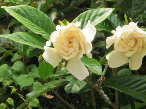 幼虫が青虫に変身した。その数四つ。幼虫も数える度に増えている。先ほどまで西日が斜めに射し暑いの、むし暑いの。それも一段落した。梔子の花の咲き初めは真っ白であったが、日がたち幾分薄茶色になってきている。落ち着いた良い色あいで、この方が好きである。 梔子の花にゆふぐれ近づけり クリックしてね ↓ 人気ブログランキングへ 俳句・夏・植物、梔子の花