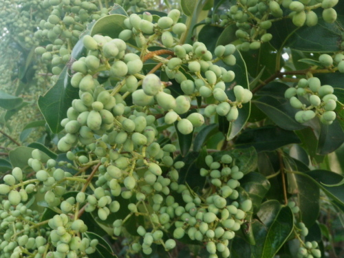 鼠黐の実 黒鉄黐の実モチノキ科常緑高木で、庭木にもよく植えられる。夏の頃黄緑色の小花が群がり咲き、球形の小さな実を結ぶ。赤く熟す。以前はこの樹皮から鳥黐をつくったのでこの名がある。野川沿いの喜多見ふれあい広場の階段にかけて黐の木が並んでいる。 黐の実の混み合うてゐる円(つぶ)らかな クリックしてね ↓ 人気ブログランキングへ 俳句・秋・植物、黐の実