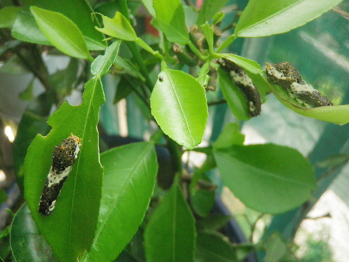 ベランダにある盆栽の夏みかんの木に先日秋揚羽が卵を産んで、それが幼虫になった。今朝数えてみたら11匹いる。餌の葉っぱが足りないのではと心配。今日も秋の日差しが強いので、秋簾をベランアの柵の方へ垂らした。 盆栽に幼虫あまた秋日濃し クリックしてね ↓ 人気ブログランキングへ 俳句・秋・時候、秋日・秋日濃し、秋揚羽の幼虫