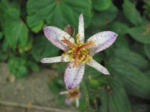 ユリ科の多年草。茎は直立し崖から垂れ下がるように咲く。名前の「杜鵑」は花被片に薄紫の斑点があり、それが「時鳥」の胸にある斑点に似通っているところから付いた。別名油点草とも呼ぶ。 京に生れ東に暮らし杜鵑草 クリックしてね ↓ 人気ブログランキングへ 俳句・秋・植物、杜鵑草(ほととぎす)・油点草(ゆてんさう)