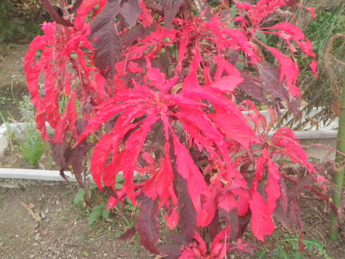 熱帯アジア原産のヒユ科の一年草の観葉植物。初秋になると緑の頭部から紅、黄、斑入りなど色がつきはじめ、雁の訪れる頃いよいよ鮮やかな彩りを呈する。「雁来紅」の名の所以である。「かまつか」とも呼ぶ。とんぼ公園にて。 かまつかや埴輪の馬の目の先に クリックしてね ↓ 人気ブログランキングへ 俳句・秋・植物、葉鶏頭・雁来紅・かまつか