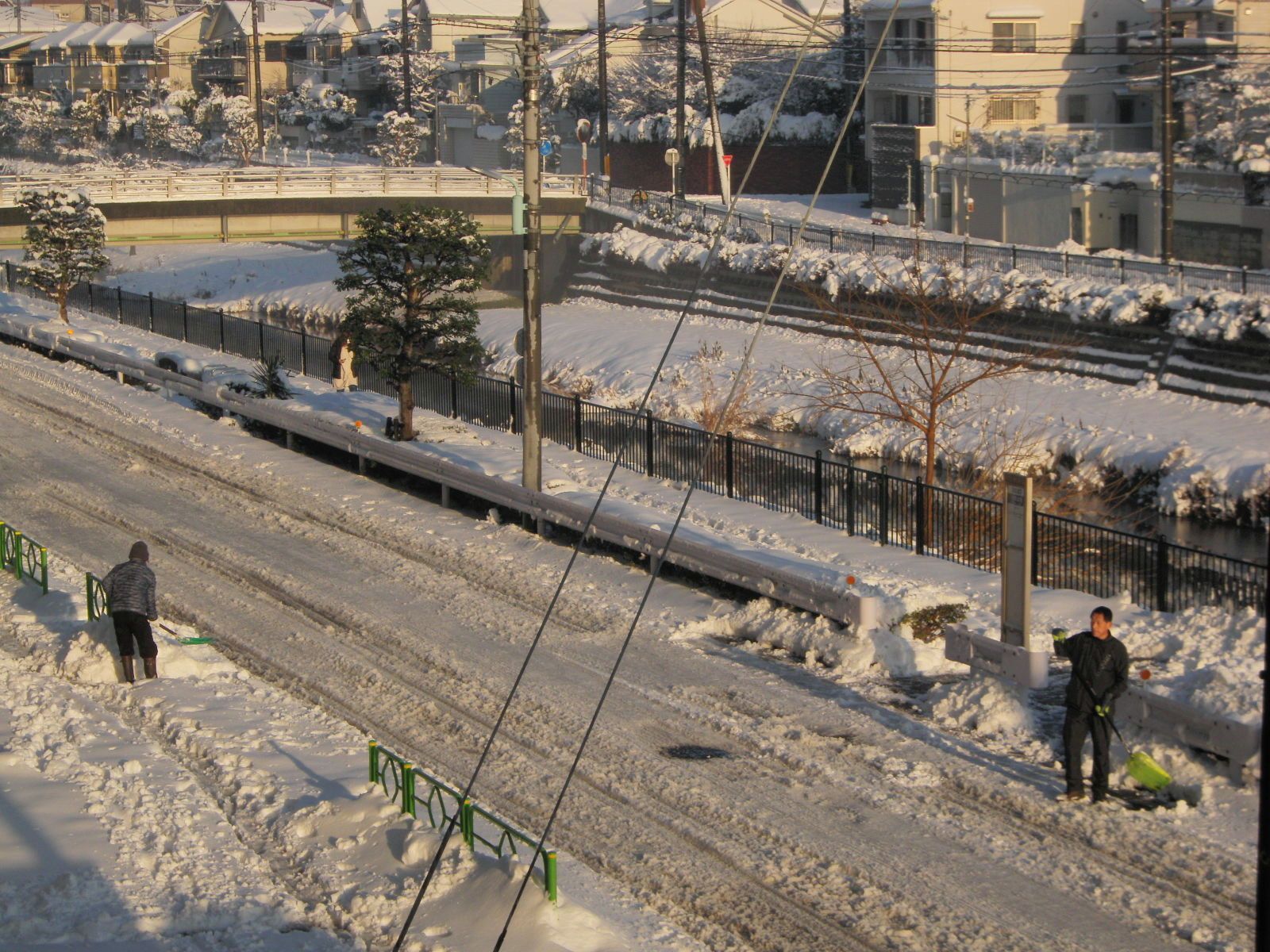 朝8時前に外の雪景色がどうなっているのか気になり眺めて見た。ベランダ側は駐車場になってをり、車は雪をすっぽり被っていた。野川側は男二人が雪かきをしている。昨日の積雪は20cm位あり、とてもスコップでは間に合わないような気がしたが、同時に感心な人もいるもんだとも思った。 男手の雪搔いてをり声掛けて クリックしてね ↓ 人気ブログランキングへ 俳句・冬・人事、雪搔