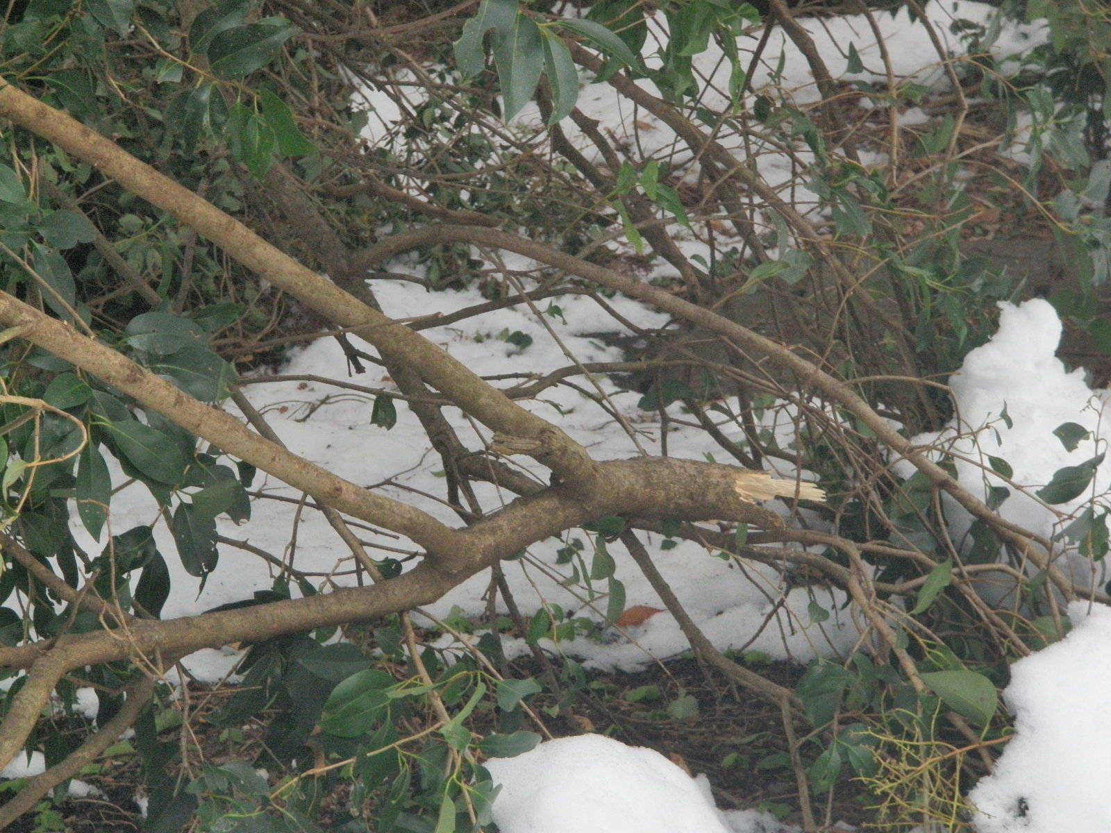 降り積もった雪の重さに絶えかねて木や竹が折れることを雪折という。辺りが曇っていたが1時半頃にいつものように糟嶺神社にお詣りした隣接する叡山派の後明照院へも賽銭を入れた。その後積雪のあと初めて国分寺崖線に足を踏み入れた。ここは学童の近道で雪はほとんど解けていたが、雪折の木を発見した。 雪折やけふ学童に会はざりき クリックしてね ↓ 人気ブログランキングへ 俳句・冬・植物、雪折、国分寺崖線