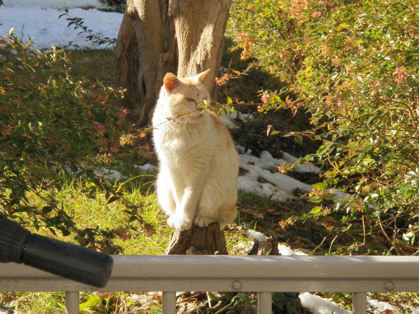雪やこんこ あられやこんこ 降って は降っては ずんずん積る 山も野原も 綿帽子かぶり 枯木残らず 花が咲く 雪やこんこ あられやこんこ 降っても降っても まだ降りやまぬ 犬は喜び 庭 駈けまわり 猫は火燵で丸くなるこの猫はマンションの老女が毎日餌を与えているが、自分の家で飼おうとはしない。猫好きなのに何故だろうと思う。そんな訳で雪が降っても炬燵には入れない。そこで切り株の日当たりで日向ぼっこをしている。 切株の日向にをりぬかじけ猫 クリックしてね ↓ 人気ブログランキングへ 俳句・冬・動物、かじけ猫