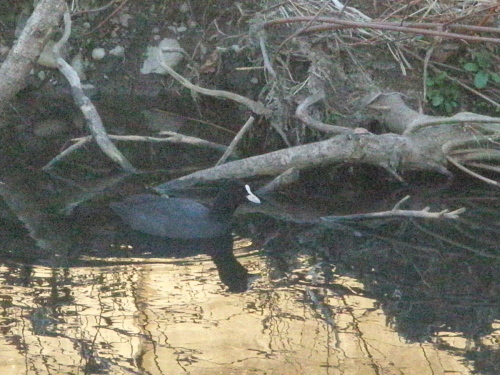 野川の岸辺を散歩していると、いつもは見慣れない水鳥が5羽泳いでいた。近くに鴉がいぶかしげに水鳥を見ていた。水鳥は大鷭(おおばん)でクイナ科、嘴と額板が白い。夏の季語とされている。大鷭は北から暖地に移動するので、移動途中に野川に降りたようであるが二三日して行ってみたがもう大鷭の姿はなかった。鴉が大鷭に見入っていたのは、自分によく似て羽根が黒いがスイスイ泳いでいたからであろうと私は思っている。 水鳥の様子窺ふ鴉かな クリックしてね ↓ 人気ブログランキングへ 俳句・冬・動物、水鳥、大鷭、野川