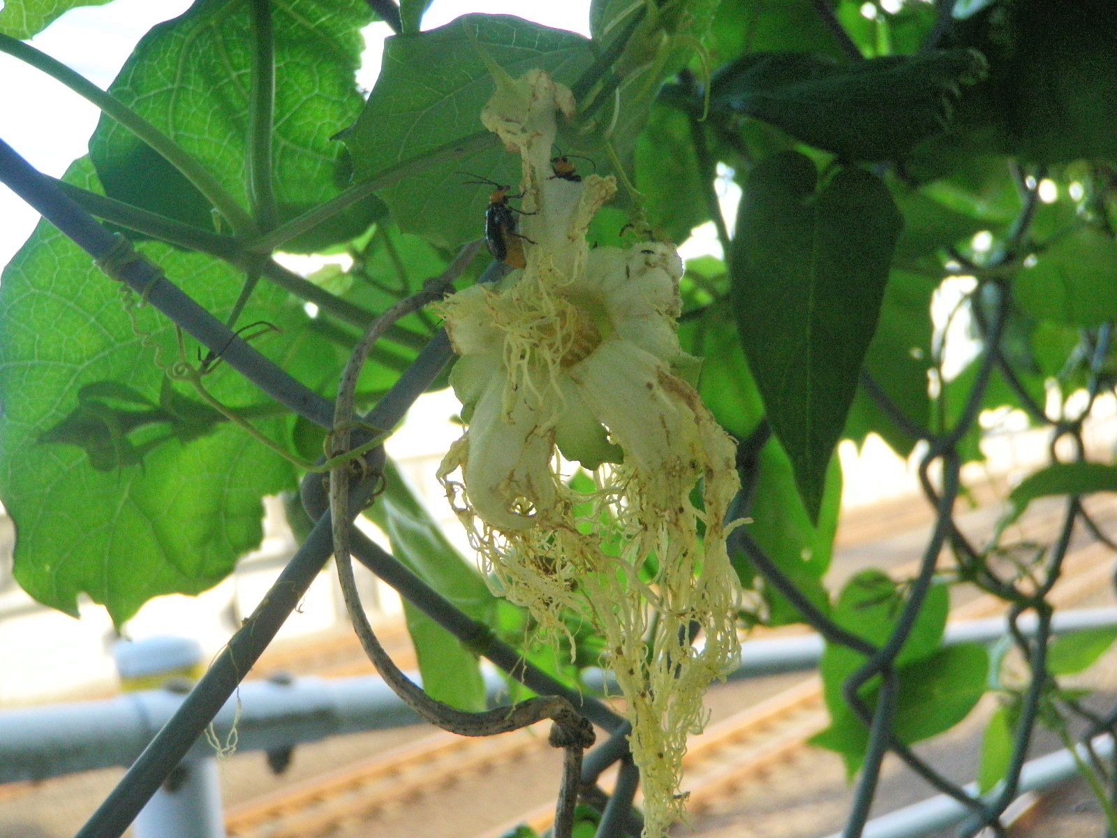 昨日は足を伸ばし喜多見不動尊へお参りに行った。不動尊に向かって右に小田急線があり電車が走っている。ロマンスカーを撮りたかったが、生憎この時は新宿行きの急行電車が通ったのでこれで我慢した。不動尊と線路を分かつフェンスには烏瓜の花が純白のレースのドレスを纏って咲いていた。 烏瓜の花の向うに線路あり クリックしてね ↓ 人気ブログランキングへ 俳句・夏・植物、烏瓜の花、喜多見不動尊、小田急線