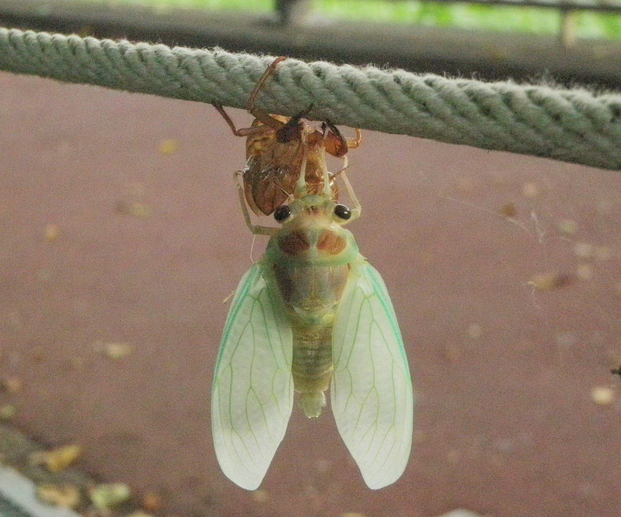 昨日は久し振りに猛暑が和らいだので、夕方散歩に出かけた。半袖だったので神社で蚊に刺されたが気を取り直していつもの国分寺外線の草原を抜けると夏鶯が元気よく鳴いた。夏鶯に口笛で応えながら、世田谷トラスト協会へ足を運ぶ。すると句会でお世話になっているMさんの娘さんとその二人児に出逢った。上の幼稚園児の男の子は虫好きでいつも虫を探しているらしい。早速穴から出たばかりの蝉(写真下)を探しあてたとのこと。協会の中で涼んでいるとまた蝉が羽化しているのを見つけたと連絡を貰った。(写真上)珍しい光景に興奮しながらシャッターを切った。 目の澄みしをの児二人や蝉生る クリックしてね ↓ 人気ブログランキングへ 俳句・夏・動物、蝉生る(せみうまる)