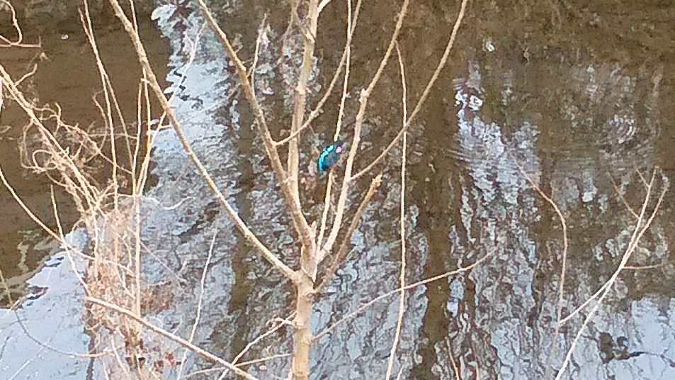 今日で1月が終わる。当地も夕方から雪になるとの予報で終日曇り勝ちであった。午後郵便ポストへ出かけたところ風もなく寒くもなかったので、野川へ出てみた。すると翡翠が枯れ枝に止まり2・3度川へ飛び込んでは小魚を獲る瞬間に出会った。「犬も歩けば棒に当たる」の感しきり。 枯枝にかはせみの瑠璃際立てり クリックしてね ↓ 人気ブログランキングへ 俳句・冬・植物、枯枝、かはせみ