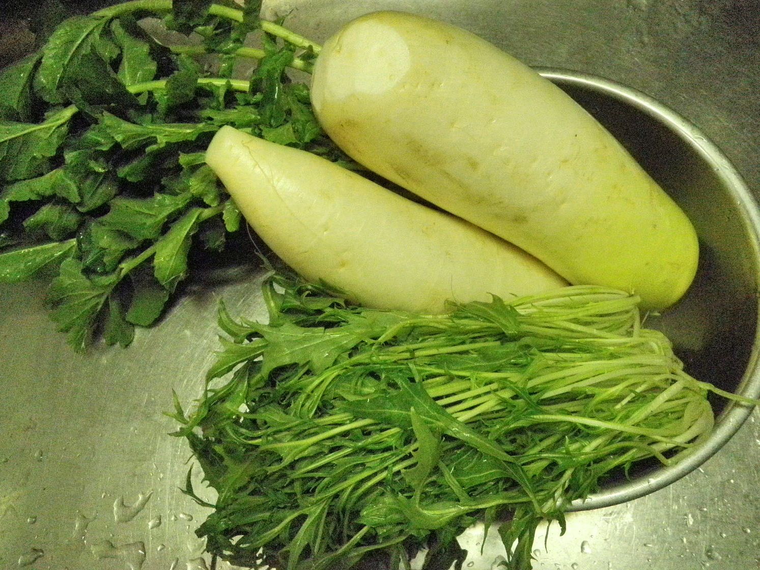国分寺崖線の清稲荷は表札に「清水」とあり、敷地稲荷である。その地続きが農家で、久しぶりに訪れたところ、農地の半分に大邸宅が建っていた。ここの表札も「清水」とあった。遺産相続で建てたのであろうことは一目瞭然である。その農地にはまだ野菜販売の旗があったので、入ってみた。すると販売台の右側に大根二本と水菜の束(写真)が捨ててあるのに気がついた。この大根と水菜は最終チェックで売らないと決め捨てられたのであろう。私は勿体ないのでそれを黙って貰って来た。1.サバ缶を汁ごと鍋に入れ塩で味を調え水菜を入れた。水菜は春の季語で俳句には詠めなかった。2.大根はいちょう切りにし、お揚げと共に炊飯し炊き上がったところで到来の塩鮭を焼きご飯に入れた。3.いちょう切りの大根をお皿に並べサランラップを掛けてチーンして味噌汁に。あぁ、美味しかったこと。これはきっとお狐さんの功徳であろう。 大根飯お狐さんの功徳とも クリックしてね ↓ 人気ブログランキングへ 俳句・冬・植物、大根・大根飯