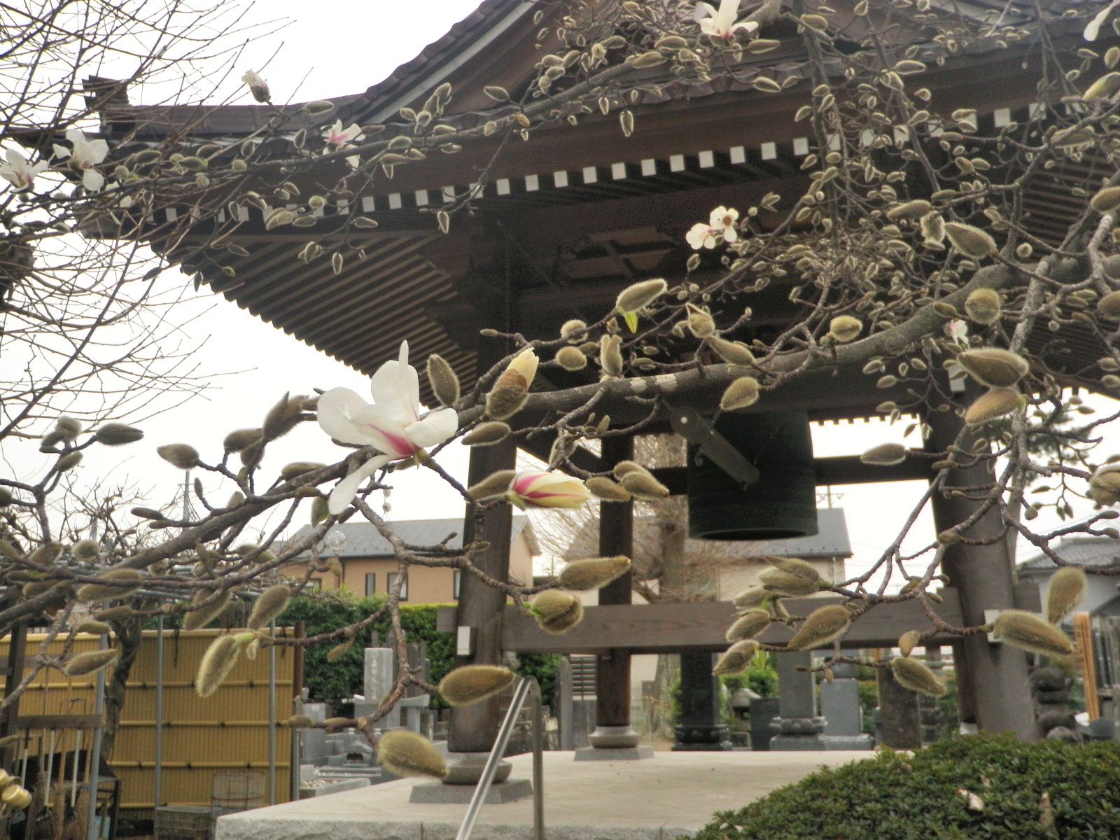 流山光明院は門構えの立派な寺で、鐘楼もある。鐘楼の横に辛夷の木があり、わずかではあるが花を咲かせていた。蕾が沢山見受けられたので、お彼岸の頃は辛夷が咲き誇っているであろう。 鐘楼の古刹に咲ける辛夷かな クリックしてね ↓ 人気ブログランキングへ 俳句・春・植物、辛夷、流山光明院