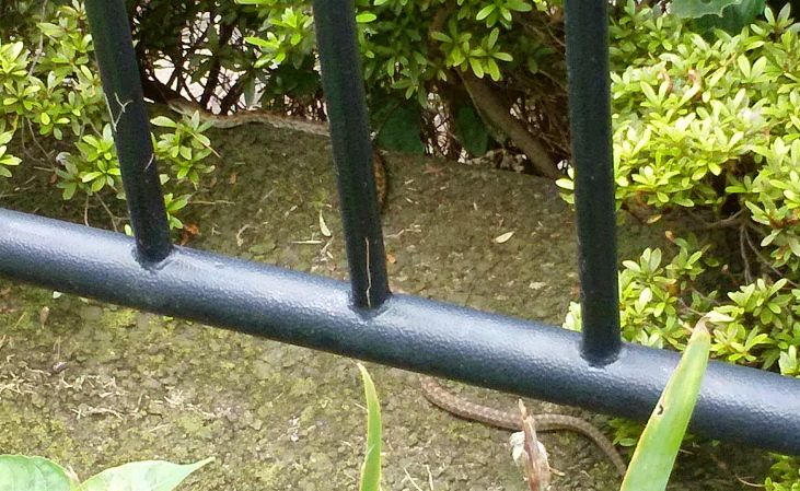 有鱗目ヤモリ科の爬虫類の総称。多くは夜行性・食虫性で、鳴くものもある。壁や天井などに貼りついて移動する。夜出て、昆虫を捕食。毒はない。野川沿いを散歩していた時川沿いの柵に守宮が貼りついていた。午後5時過ぎ、未だ回りが明るいのでカメラを向けても動く気配はなかった。 逆さまに貼りついてゐる守宮かな クリックしてね ↓ 人気ブログランキングへ 俳句・夏・動物、守宮(やもり)、野川沿い