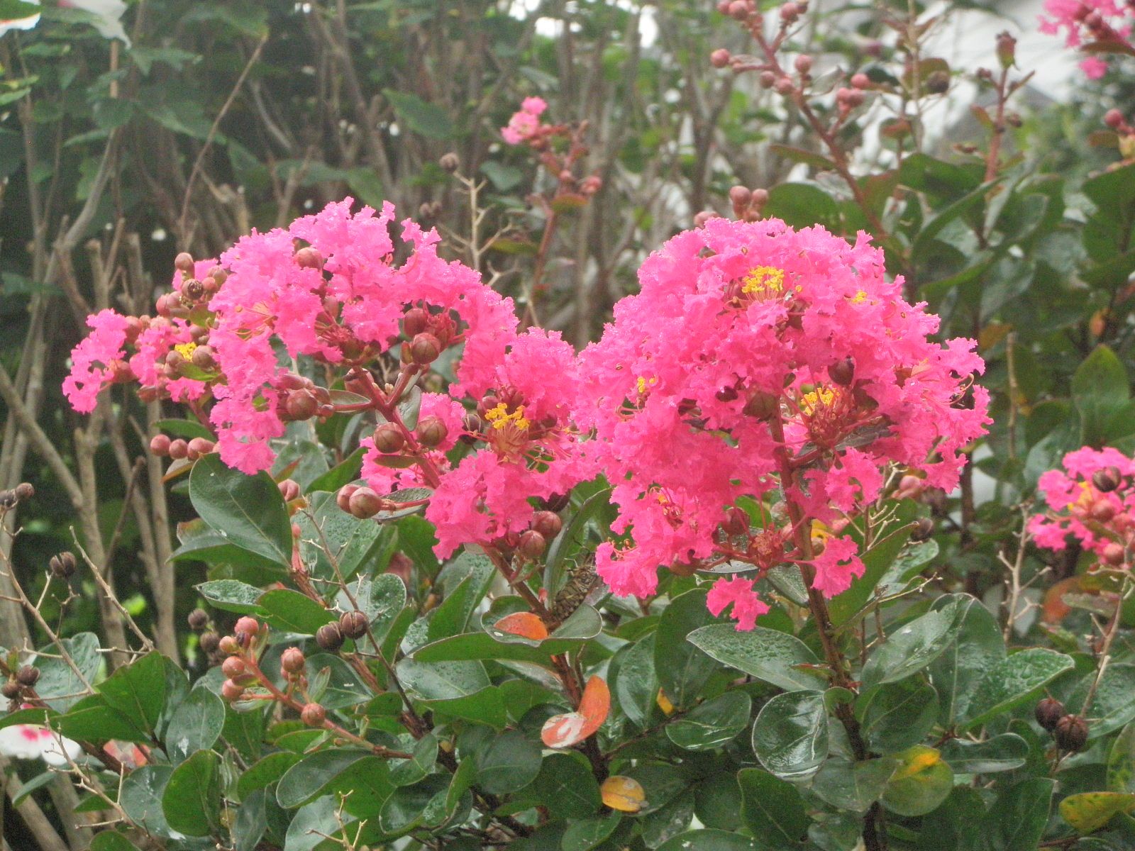 百日紅は幹の皮が滑らかなので猿でも滑るという意味がある。夏から秋に紅色または白色の小花が群がり咲く。漸く梅雨が明け、百日紅の似合う暑さとなった。暑いのは好きではないが寒いよりは我慢できるのは京都の盆地で育ったゆえんである。百日紅を見ながらハンカチで汗を拭き野川沿いを散歩している。昨日みんみん蝉が鳴いた。 日矢を吸ひ紅を増したる百日紅 クリックしてね ↓ 人気ブログランキングへ 俳句・夏・植物、百日紅(さるすべり)
