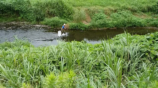 神明橋の上流で男性が網を翻しながら何かを採っていた。ふと川沿いの柵を見ると東京都の「特別採捕許可」の幟がはためいていた。男性は河川の生物の調査員と知れた。こうして野川の生態系が守られているのだと理解した。 梅雨晴や野川を漁る調査員 クリックしてね ↓ 人気ブログランキングへ 俳句・夏・天文、梅雨晴、野川、特別採捕許可