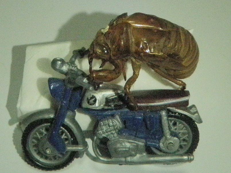 4日ほど前から野川沿いの桜並木に蝉が鳴き出した。にいにい蝉である。夕風に乗って蝉の声は涼しげである。この空蝉はマンションの植え込みに落ちていたものを拾ってきて夫の愛車に乗せた。色がブルーなので、CB92かCR71であろう。空蝉のハンドルさばきは上々である。 空蝉のハンドルさばき夫に似し クリックしてね ↓ 人気ブログランキングへ 俳句・夏・動物、空蝉
