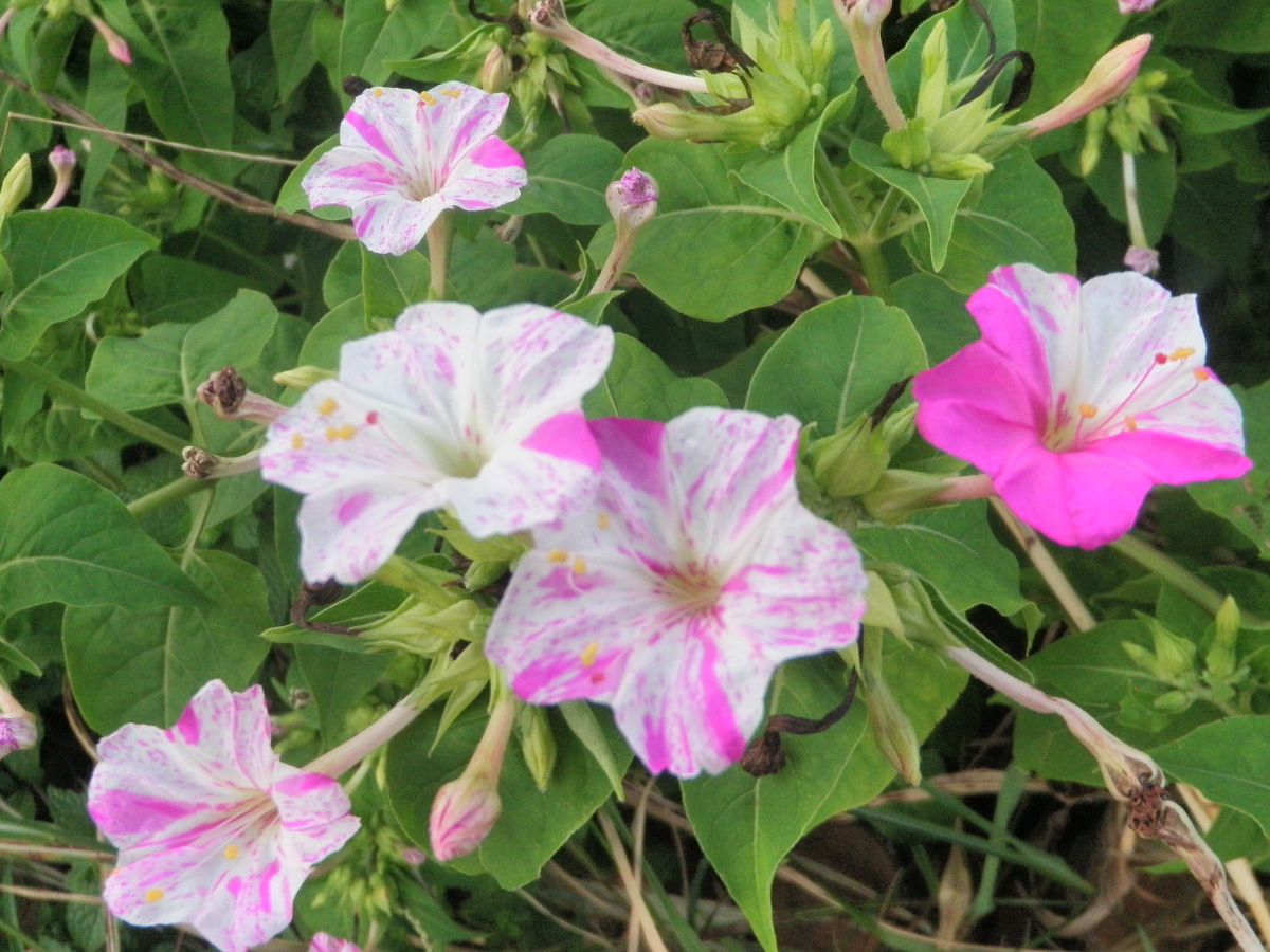いつも夕方野川沿いを8千歩歩いている。時々走っている人もいるので、整形外科の医者に走って良いですかと訊ねたら、未だおとなしくしていて下さいと言われた。晴れた日に白粉の花の傍を通ると良い香りがする。曇り日や雨の日は花が開いていない。夕化粧をしてのお出かけは晴れた日に限るということか。もう、そんな誘いはないので散歩を愉しんでいる。 おしろいの咲きたる径を水持ちて クリックしてね ↓ 人気ブログランキングへ 俳句・秋・植物、白粉花・おしろい・夕化粧