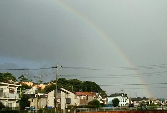 昨夕、いつも通り野川へ散歩に出かけた。朝から時雨が続いていたので、傘を持っての散歩である。小田急線のガード下を出たところ、虹が見えた。秋の虹である。デジカメを持って出なかったのでスマホで撮った。そのあとしばらくすると大粒の雨が激しく音をたてて振り出したのでガード下で雨宿りをした。納骨を終え、新盆の法要も終え、夫も喜んでくれているのであろうと感無量であった。大粒の雨は誰彼の涙雨かしら。 法要を終へし安堵や秋の虹 クリックしてね ↓ 人気ブログランキングへ 俳句・秋・天文、秋の虹、野川、小田急線ガード下