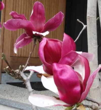 木蓮には白木蓮と紫木蓮がある。植えてある場所に因ると思いますが、白木蓮の方が先に開きもう散りかかっている。少し遅れて咲いた紫木蓮は万感の笑みを湛えているかに先誇っている。今日は当地は昼前から生憎の雨となった。 雨の日は雨を歌ひて紫木蓮 クリックしてね ↓ 人気ブログランキングへ 俳句・春・植物、紫木蓮