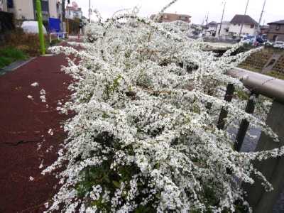 夜目にも真っ白な、小粒な花を密につける、バラ科の落葉低木。少しずつ咲き始め、やがてどの細い枝にも花をつけ始めると、さながら雪のようなので雪柳という。雪柳が野川沿いの遊歩道のあちこちに咲いている。辺り一面が明るく、散歩の足が進む。 いつまでも純でありたや雪柳 クリックしてね ↓ 人気ブログランキングへ 俳句・春・植物、雪柳・小米花、野川沿い