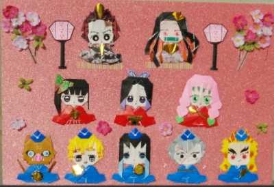 たまたま通るとある家のウインドに何かあるはと気づき自転車を止めてみた。近づいて見ると雛まつりの貼り絵であった。さらにつぶさに見ると、鬼滅の刃の雛壇である。今日から三月。女主の気持ちが嬉しい。 ウインドに雛の貼り絵や三月来 クリックしてね ↓ 人気ブログランキングへ 俳句・春・時候、三月、雛祭の絵