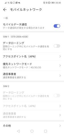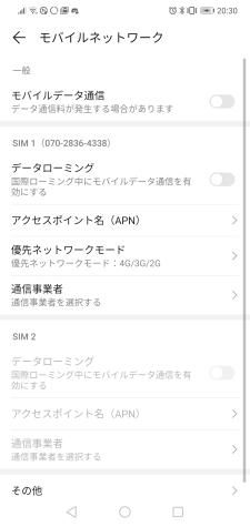 ➡モバイルデータ通信「OFF」➡「ON」➡「解決」