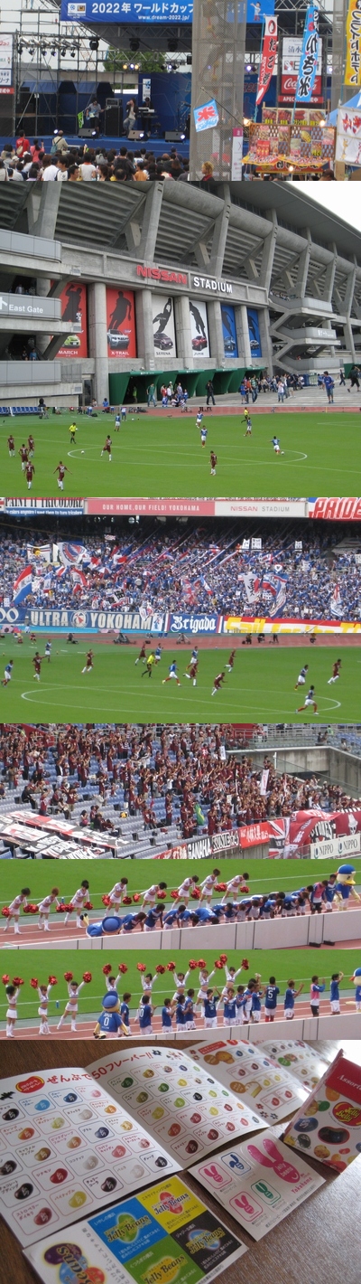 なんだか賑やかだと思ったら、W杯招致イベントしてました!横浜×神戸を子供と一緒に観戦。座席は空いていたので、崎陽軒の弁当を食べながら試合は神戸がレッドカード2枚喰らい、横浜1-0神戸伊勢佐木町でジェリーベリーを配布していた。種類が豊富で、結構、美味しい!サッカースタジアム本日動画旅先画像薪ストーブ黒柴犬GALLERY農業をやろう