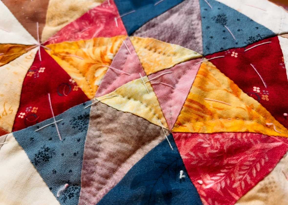 このパターンはいろーーんな形が見えてくるので、キルティングラインを考えるのが楽しい作品です。