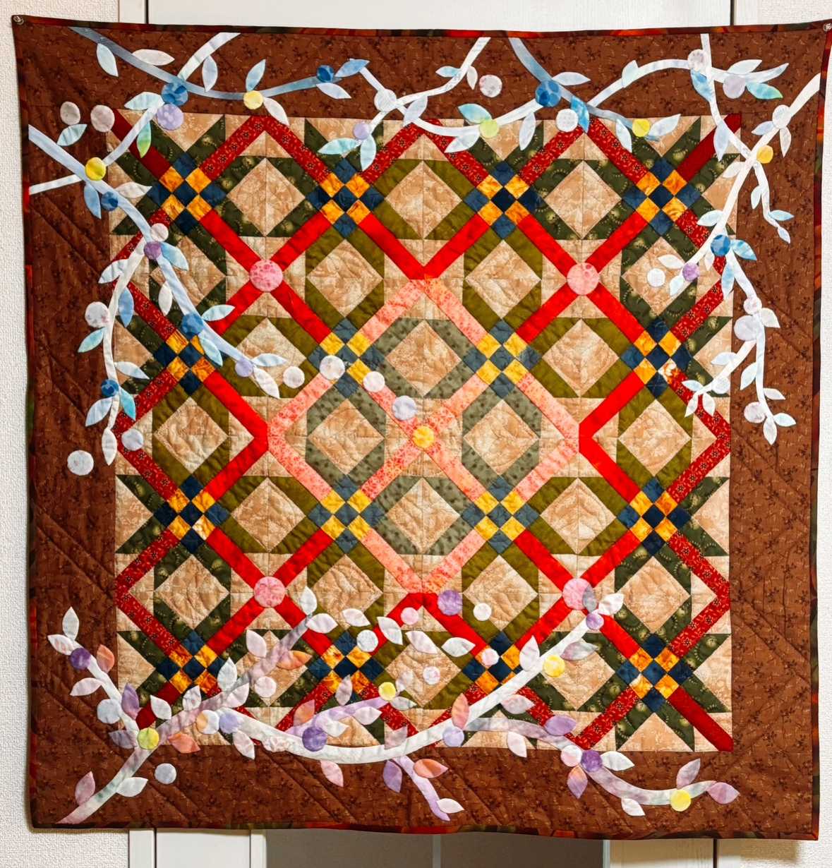 10月も残り2日となりました。今年もあと2ヶ月ですねぇ。1日があっという間ですね。残りの2ヶ月、充実した毎日にしたいです〜。先日、メキシカンスターの和風タペストリーがほぼ完成となりました。パイピング仕上げをして、飾れるようになりました。一応、完成となりましたが、アップリケ部分の落としキルトと飾りキルトはこれからです。キルティングが大好きなので、楽しみまーす。寒くなってきたので、温かい飲み物が欲しくなりますね。マックカフェで美味しいコーヒーを飲みました。オレンジフレーバーのラテです。見た目もオレンジの輪切りみたいになってて可愛くて、甘くて美味しかったです〜。美味しいけれど、さすがマックカフェ。Mサイズで350円くらいだったかな。す〜ごくリーズナブルでした。お値段以上で嬉しいお味でしたー!カフェ巡りも楽しそうですね〜。しばらくはバタバタな日々になりそうなのですが、落ち着いたらのんびりカフェ開拓もしてみたいなーと思ってます。素敵なお店を見つけたら、ご紹介しますね!!最後まで読んでくださり、ありがとうございました。オーダー品、レッスン依頼などYstyleゆうへのお問い合わせはこちらから↓ ↓ ↓お問い合わせ等はこちらからどうぞ╰(*´︶`*)╯ブログ村のランキングに参加しています。応援クリック!よろしくお願いいたします(*´꒳`*)にほんブログ村にほんブログ村
