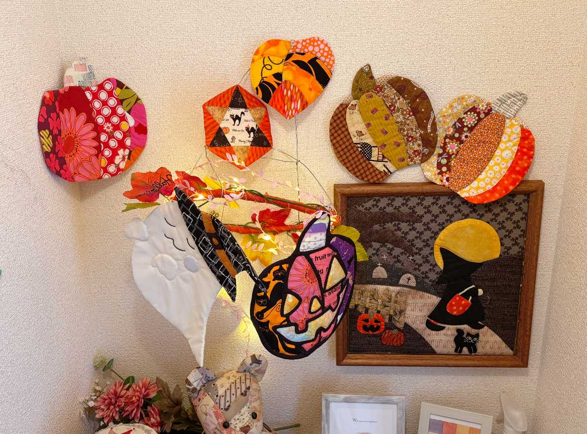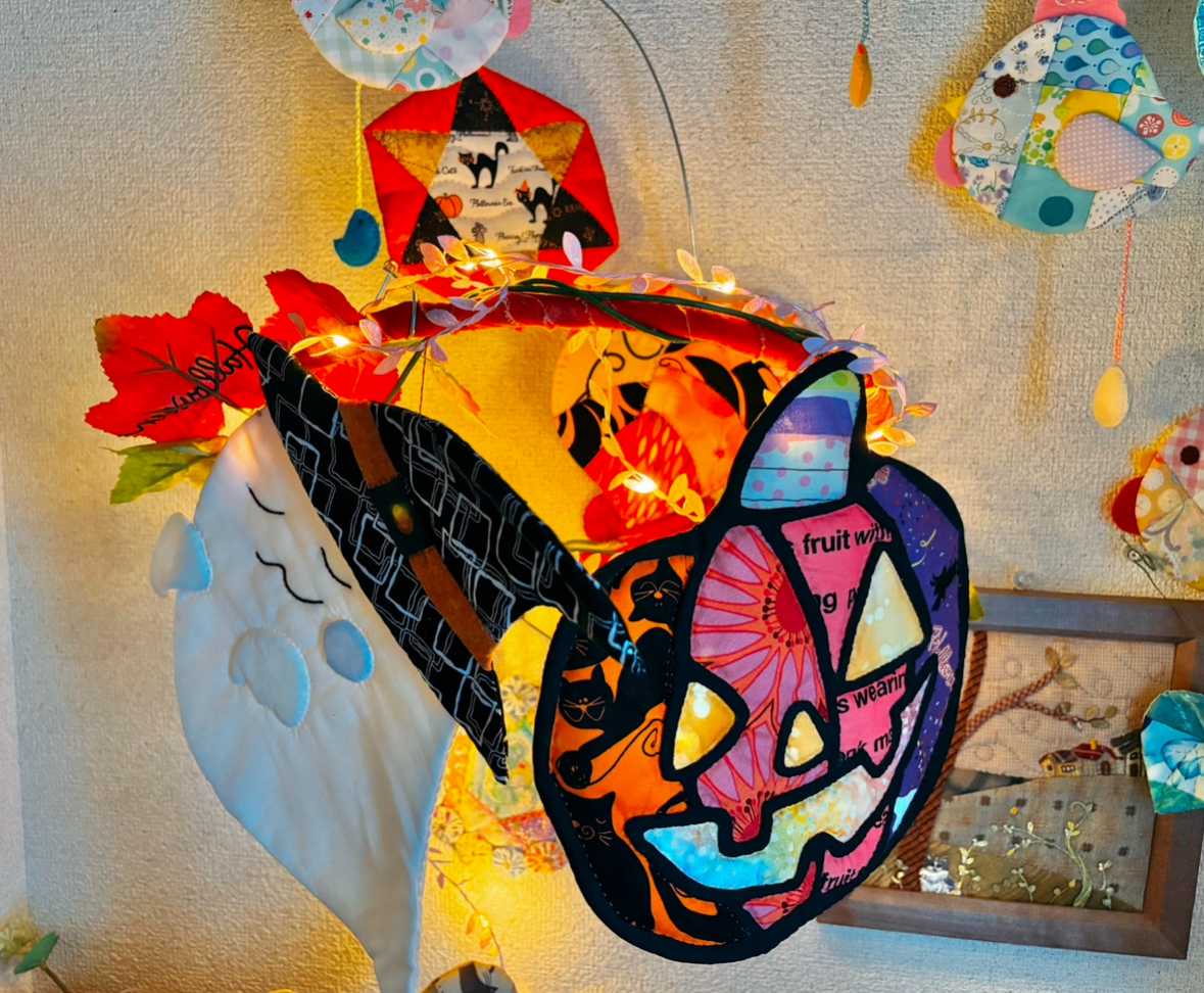 9月も半ばになりましたね〜。まだ暑いですが、朝晩は過ごしやすくなった気がしています。体調不良でこの三日間はたくさんたくさん眠りました。そして、昨日と今日は作品作りもだいぶ進みました!昨日はソファーカバーを進めましたが今日はハロウィンスーちゃんのフレームのキルティングを終わらせ、30センチ角のダンボールにセットし、フレームに入れて、そのほかのハロウィン小物と一緒に玄関に飾りました。毎年飾ってたフレームですが、裏板に縫い付けてなかったんです。キルティングもしてない部分があったので、今日はちゃんと仕上げました。中途半端なまま、何年も飾ってたって、かなりいい加減なことしてましたー(⌒-⌒; )他の季節のスーちゃんも、ひとつひとつちゃんとフレームで差し替えられるようにしていきます。立体かぼちゃは今年は作れませんでした。たくさんあったのに家に残ってるのはこの三つになってしまいましたー。他はみんなプレゼントしてしまいました。一番小さなミニミニサイズはストラップ仕様になってます╰(*´︶`*)╯今年作ったジャックオランタンは、ワイヤーに留めつけてます。ライトをつけてみるといい感じです。このライトはフライングタイガーさんで購入したもの。ピンクの葉っぱ型のライトです。お化けちゃんに今年は帽子を縫い付けてしまいました。今日はと閃いたんですが来年は箒に乗って飛んでる魔女スーちゃんを作ったらどうかなーと。ちょっとワクワクしてます。絶対来年になると忘れてると思うので、実物大の図案を描いておくことにします!毎年同じような感じですが、少しずつ増えたり減ったり笑笑でも、季節ごとに可愛い世界を作れたらなーと思います。ハロウィンが終わったらクリスマスものですね。ほんとに一年、あっという間です…インテリアライト テーブルランプ タン ハロウィンデコレーションライト フレームランプ 火光 火炎 ライト 常夜灯 ルームライト LED リアルなカーボンファイヤー ムード 間接照明 照明 インテリア 装飾 飾り 屋外 アウトドア おしゃれ かわいい 母の日 父の日 プレゼントハロウィン 飾り ソーラー カボチャ & お化け ライト かぽちゃ 埋め込み ステッキ 6本セット 屋外装飾 防水 タイマー led ガーデンライト 充電式 電飾 かわいい モチーフ ライト クロネコ 黒猫 骸骨 アプローチ 花壇 庭 カラフルハロウィン 飾り LED ゴースト ネオンライト 壁掛け ネオンサイン USB 給電式 明るさ調整 ハロウィン LED ネオンライト 吊り下げ 窓 ドア ハロウィン デコレーション ゲームルーム パーティー バー 装飾 取り付け簡単 Halloween ハロウィン装飾クリスマスのイルミネーション綺麗ですが、ハロウィンもライトで華やかにすると楽しいですね!いろんなものがありますね〜〜(*^^*)最後まで読んでくださり、ありがとうございました。オーダー品、レッスン依頼などYstyleゆうへのお問い合わせはこちらから↓ ↓ ↓お問い合わせ等はこちらからどうぞ╰(*´︶`*)╯ブログ村のランキングに参加しています。応援クリック!よろしくお願いいたします(*´꒳`*)にほんブログ村にほんブログ村