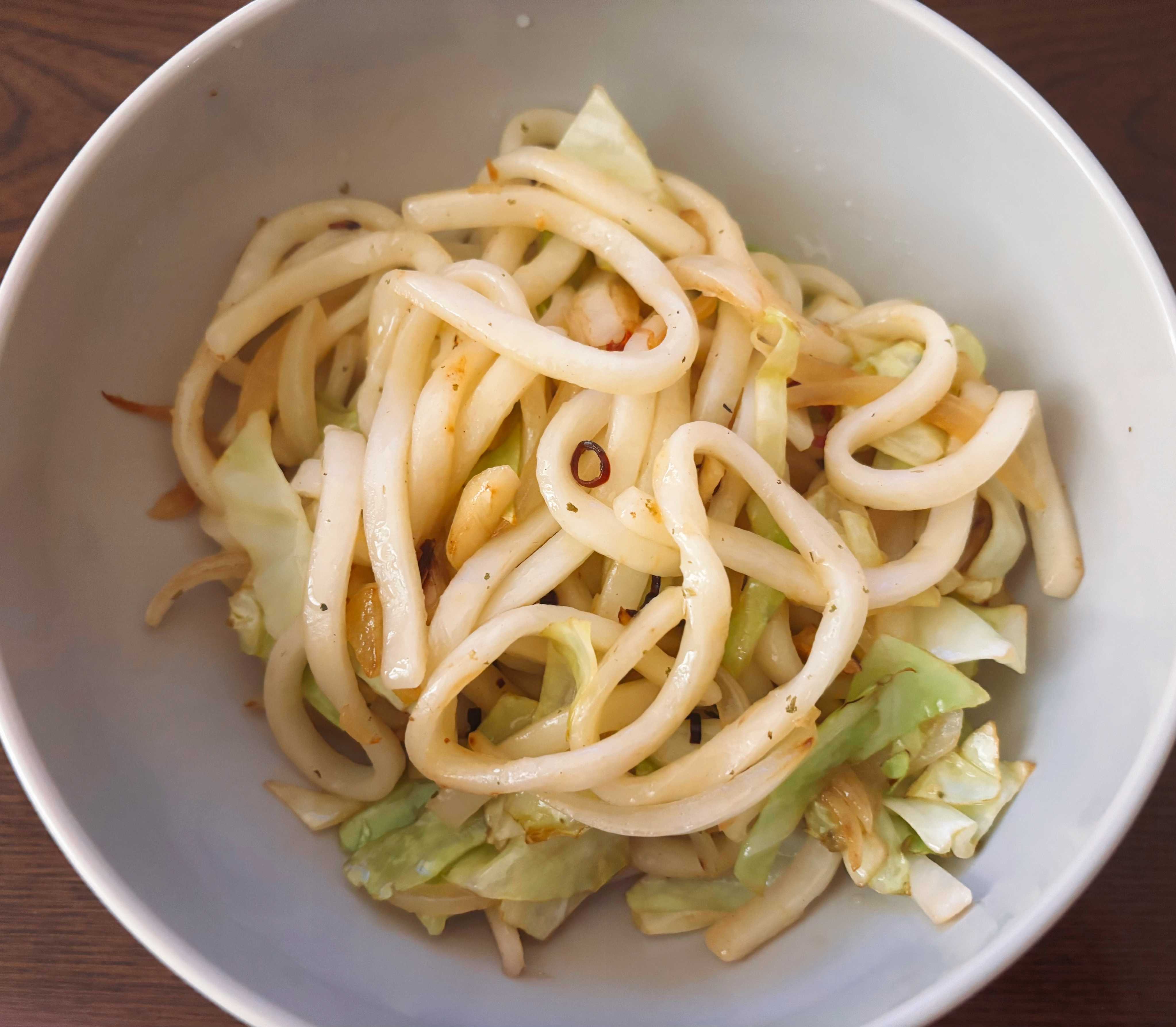 今日は、体調を整えるために午前ちゃはゆっくり休み、お昼ご飯を食べてからソファーカバーのボーダー部分を6メートルつなぎました。一応、今日のノルマは達成ということで!そんなに暑くもなく、過ごしやすい日でしたが、なんとなくだるさが続いていて、なんとかやり切れたという感じでした。お昼ご飯は、一つうどんが残ってたので、うどんでペペロンチーノにしよう!と思って作ってみました。玉ねぎ、キャベツ、にんにく、鷹の爪、ガーリックソルトだけで出来上がったのがこれ。見た目はめちゃ地味ですが、美味しかったです。うどんはレンチンして柔らかくしてから炒めました。ちなみに今夜の夕飯は豚汁でした。豚汁がメインで、ゆで卵入りの野菜サラダと茶碗蒸し。もうこれでお腹いっぱいになりました。けろさんは枝豆も。白米のお供は、三浦半島で買ってきたしらすが入った梅肉。今日で食べ切りました。美味しかったなー。昼も夜もしっかり食べて、思いっきりゴロゴロできた一日でした。涼しくなってきたので、食欲も湧きますね。食べ過ぎ注意報でました〜╰(*´︶`*)╯最後まで読んでくださり、ありがとうございました。オーダー品、レッスン依頼などYstyleゆうへのお問い合わせはこちらから↓ ↓ ↓お問い合わせ等はこちらからどうぞ╰(*´︶`*)╯ブログ村のランキングに参加しています。応援クリック!よろしくお願いいたします(*´꒳`*)にほんブログ村にほんブログ村