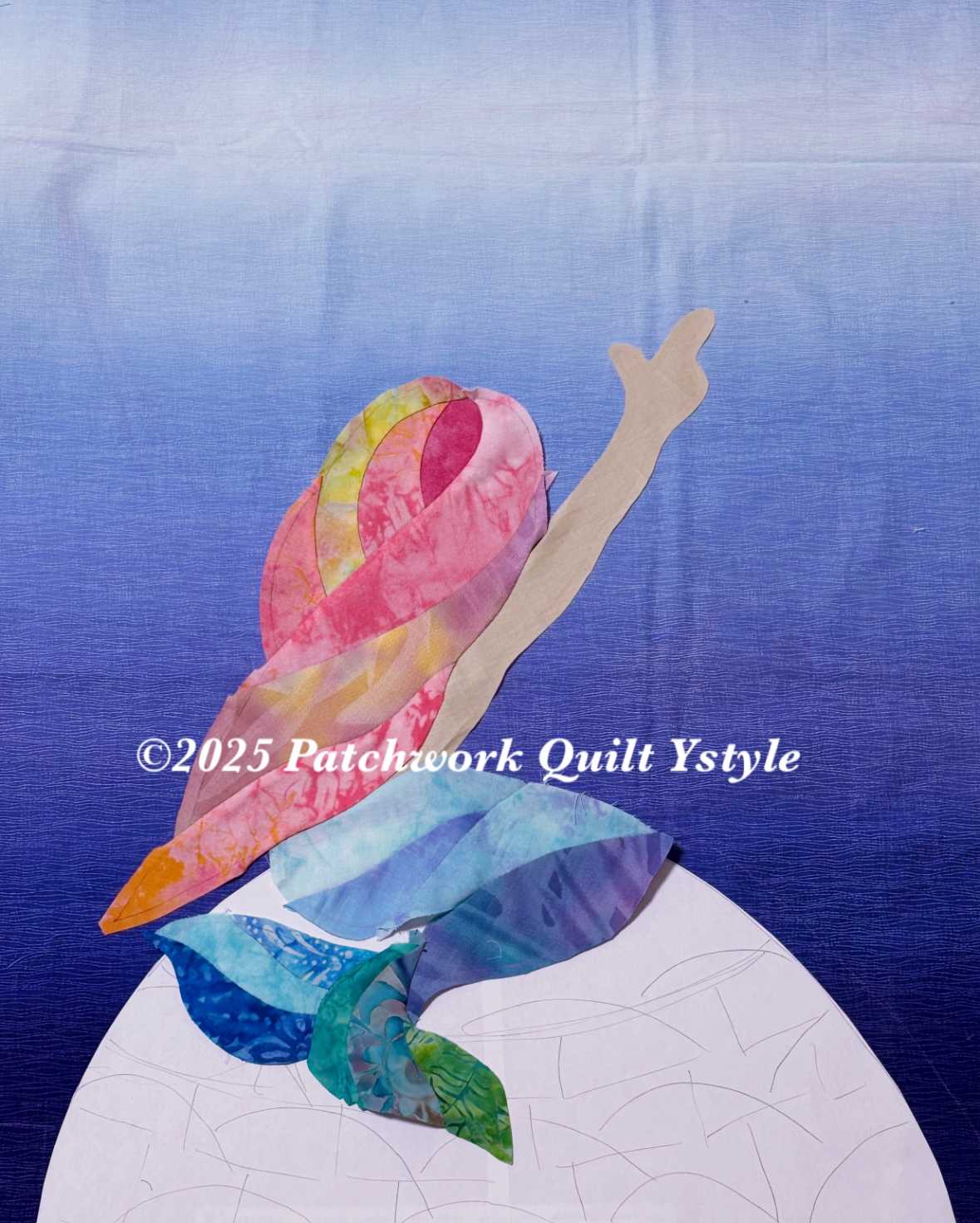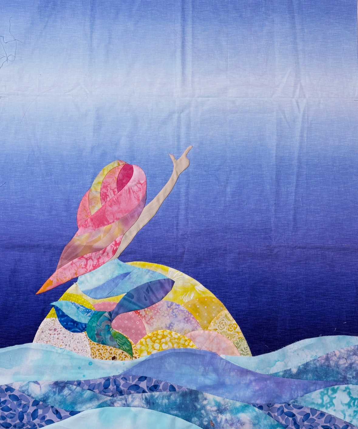今日はのんびりしつつ制作!と思ってましたが、思いの外集中して進められました。今日の作業のお供は、よにのちゃんねる(YouTube)と、ドラマ『Believe-君にかける橋-』『幸せな結婚』(Netflix)でした。そのお話は次の機会にするとして今日はここまでできました!岩?の上に座ってる人魚ちゃんです。土台のブルーの生地にアップリケ完了しました。この先の予定としては、岩?の下に波(海)をアップリケしてから、ユニコーンを作ります。ユニコーンは人魚ちゃんみたいに作ってしまいます。今日は岩から作り始めたんですが、蔵出しのキャシーマムの生地にハサミをいれました(`・ω・´)穴あきになってしまった蔵出しの生地。グラデーションで椰子の木かな?のプリントがうっすら入ってます。この生地はブルーも持ってて、以前ハワイアンタペストリーで使いました。いつかハワイアンの作品を作るぞー!!という気持ちで大切にとってあったもの。でも、使わなきゃもったいない!という気持ちになりました。02305 キャシー中島さんプロデュース 第2弾【KathyMom キャシーマム】レインボーグラデーション 綿シャーチング 綿100% 約110cm幅 (数量×50cm)【C2-6】U-2.5キャシーさんプロデュースのグラデーション生地!素敵です〜〜!この黄色系のグラデーションプリントを一番上に。その上から山形のピースを順にアップリケしていきました。シェルの要領です。でも、あくまでも自由な配置で!出来上がった岩場がこれです。ベース生地にアップリケしました。そして、最後に人魚ちゃんをアップリケ。一つ一つの図案を作ってからアップリケしていってます。少しずつですが出来上がっていく楽しみがありますね。まだまだ先が長いですが(毎回この言葉を書いてる気がする…)完成目指してがんばりまーーーす!!٩( 'ω' )و最後まで読んでくださり、ありがとうございました。オーダー品、レッスン依頼などYstyleゆうへのお問い合わせはこちらから↓ ↓ ↓お問い合わせ等はこちらからどうぞ╰(*´︶`*)╯ブログ村のランキングに参加しています。応援クリック!よろしくお願いいたします(*´꒳`*)にほんブログ村にほんブログ村