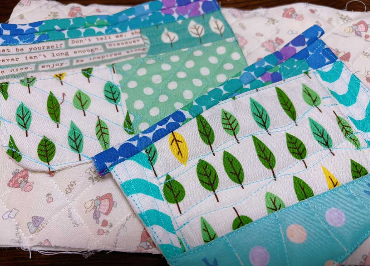 ひどい雨が降り続いて、能登の方も酷いことになっているようです。心配しながら、友達に様子を聞きながら過ごしているところです。いろんな地方で大変なことになってますね。雨が降らないのも、こんなふうに降りすぎるのも本当に困ってしまいます。不自由な思いをされてる方も多いと思います。早く落ち着きますように…と願うばかりです。一昨日と昨日の二日間で自分使いのパスケース(少し大きめ)を作りました。ピースワークもキルティングもミシンで縫いパイピング、ファスナーつけ、仕立てだけ手縫いにしました。メインの表裏にパイピング、ファスナーをつけた写真です。こちらは内側です。片側にだけ内ポケットをつけました。完成で記念撮影。ブルーとグリーン系で統一しました。ファスナーは水色と薄紫を使いました。ミシンでキルティングのステッチは各ピースに合わせてやってみました。いつものように上糸と下糸の色を変えてます。大きく開く方には、間違って中のものが落ちないように毎回こんなふうにナスカンをつけてます。反対側にもDカンをつけ、ミニ持ち手をつけバッグに吊り下げています。このパスケースも何年持つかなー。携帯にSuicaアプリを入れればいいんですけど万が一のことを考えて(スマホの電池切れとか)まだできてなくて(お得なんですけどねー)パスケースを使ってます。明日からしばらくはバイトがお休みなんですが色々やることややりたいことがあるのであっという間に終わりそう。和キルトもソファーカバーも続きやりますー!大忙しです、がんばろー!最後まで読んでくださり、ありがとうございました。オーダー品、レッスン依頼などYstyleゆうへのコンタクトはこちらから↓ ↓ ↓コンタクトはこちらからどうぞ╰(*´︶`*)╯ブログ村のランキングに参加しています。応援クリック!よろしくお願いいたします(*´꒳`*)にほんブログ村にほんブログ村