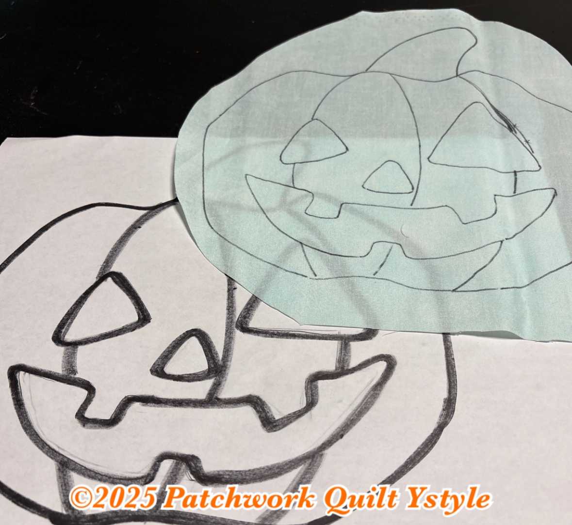 お盆休みも今日で終わりです。お墓参りもしてこれたし、孫達とも遊べたし、今日は沢山寝れたし、申し分なしでしたー。先日から少しずつハロウィンのステンドグラスミニキルトの制作を始めていました。図案は、昔生徒さん達に制作していただいてたステンドグラスキルトのジャックオランタンの部分をベースに描き直したものです。少し可愛らしい表情にしてみました。布選びがやはり一番時間かかりました。今夜続きを進めてまして、先ほどセッティング終了。次の工程は、この上に黒のエイティーをのせてしつけをかけていきます。しつけが終わったら穴を開けてリバースアップリケ。出来上がったら、スーちゃんのハロウィンのフレームと、お化けちゃんのみなミニキルトと一緒に飾る予定です。少しずつ色々増やしていきたいなーと思ってます。黒猫ちゃんとか、コウモリとか。ベタですが、ハロウィンぽいものですかねー。なんか面白いもの作りたいです。ワイヤーとかも使って。今日夕方外に出ると涼しかったですよ。確実に秋が近づいてきてますね。昼間は恐ろしいくらいに暑いから、気温が下がる夕方がことのほかありがたく感じます。今年もどんどん終わりに近づいてるなーって、ちょっと寂しい気持ちにもなってます。気持ちあげて行かなきゃですねー!!!明日は続き頑張るぞー!最後まで読んでくださり、ありがとうございました。オーダー品、レッスン依頼などYstyleゆうへのコンタクトはこちらから↓ ↓ ↓コンタクトはこちらからどうぞ╰(*´︶`*)╯ブログ村のランキングに参加しています。応援クリック!よろしくお願いいたします(*´꒳`*)にほんブログ村にほんブログ村