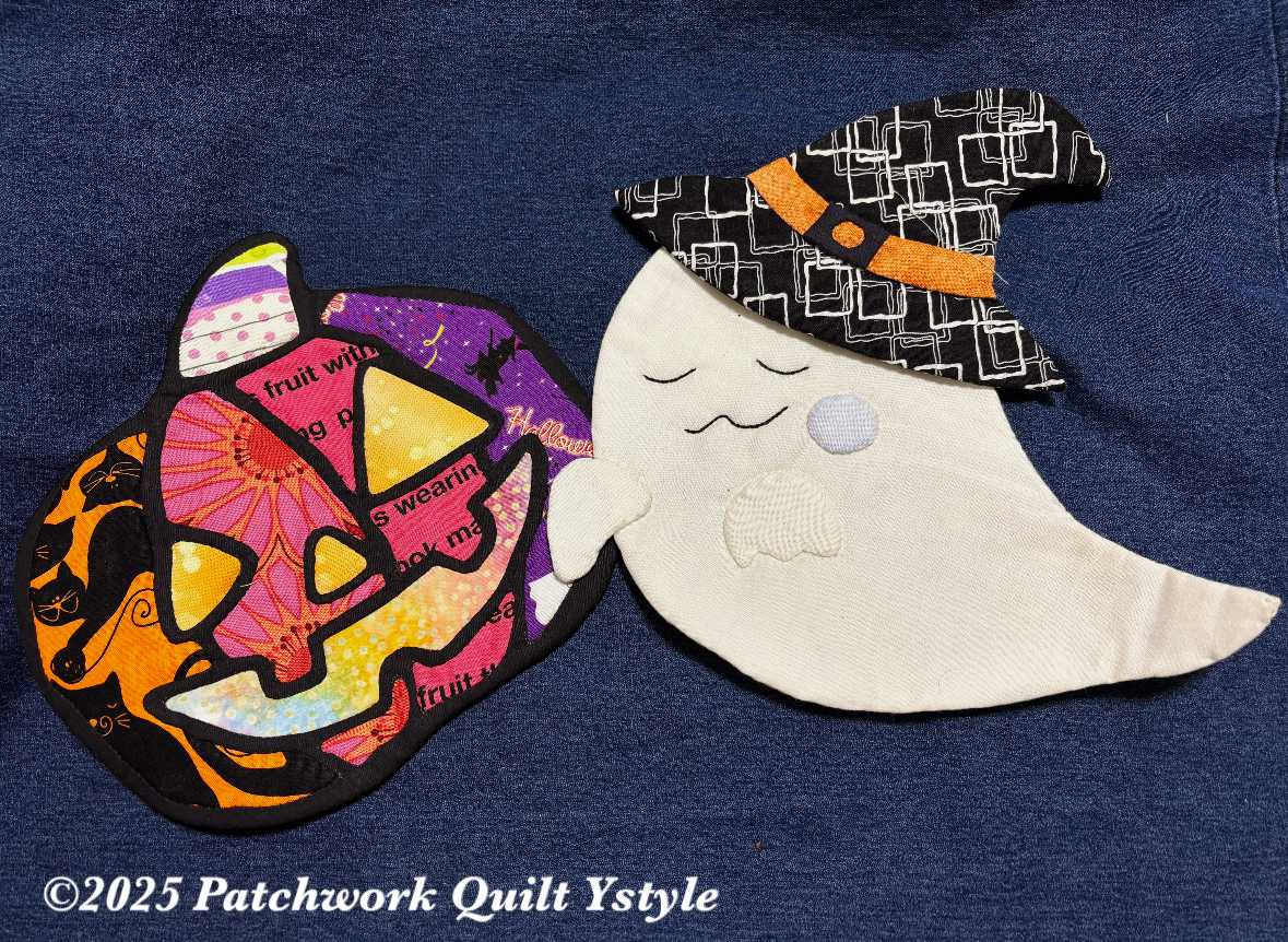 8月も、もう終盤だというのに、暑さ厳しい毎日が続いていますね。みなさん夏バテしていませんか?ちょっと体調不良に陥ってまして、絶まではいかないですが、不調続きです。どうしたら元気いっぱいに過ごせるのでしょう?何年、今まで以上に夏が苦手というか怖くなってます。ネガティブなことを言ってると気持ちも負けてしまうのでこの辺でおしまいにして…昨日、ジャックオランタンのミニキルトが、キルティング前まで終わりました。ステンドグラスキルトは基本は落としキルトだけで済むのであと少しで完成となります。お化けちゃんと並べて記念撮影してみました。並べてみると小さかった〜〜!ジャックオランタンの裏側は、カントリー系の星柄にしました。いつものようにパイピング仕上げではなく、出来上がりサイズの接着キルト芯をトップに貼り付けて縫い代を裏側に縫い付けてから裏布をまつり縫いでしあげてます。その後でキルティングです。二層でキルティングした後に裏布をまつりつけるでも良いですよね。そうすれば裏側にはキルティングの縫い目は見えないです。少しずつハロウィンものが増えてきています。今年は9月半ばには飾りたいなーと思ってます。カボチャもひとつ増やそうかな。今年は作り方変えてみようかなぁ。先日、ランチしにガストに行った時、サラダうどんを食べてみました。エビがぷりぷりして、麺に歯応えあり、美味しかったです。オクラと大葉が入っていて、さっぱりしてました。美味しかったな。あまり食欲がない時おすすめです。暑さで食欲不振になったり、冷たいものばかり食べてお腹が冷えたりしないように気をつけたいですね。まだまだ暑い日が続きそうです。本当に秋は来るんでしょうか???後しばらくの辛抱!と思って乗り切りましょう٩( 'ω' )و最後まで読んでくださり、ありがとうございました。オーダー品、レッスン依頼などYstyleゆうへのお問い合わせはこちらから↓ ↓ ↓お問い合わせ等はこちらからどうぞ╰(*´︶`*)╯ブログ村のランキングに参加しています。応援クリック!よろしくお願いいたします(*´꒳`*)にほんブログ村にほんブログ村
