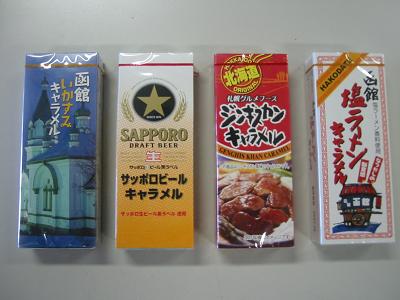 こないだ函館に行ってきたので、研究室におみやげを買った。いかすみキャラメルとサッポロビールキャラメルとジンギスカンキャラメルと塩ラーメンキャラメル。で、共有デスクにおみやげを置いといた。誰も取ってかなかった。で、ちょっと味見してみた。いかすみキャラメル意外とおいしい。もっと生臭いと思われたが普通に食べられます。サッポロビールキャラメル未体験の領域。ジンギスカンキャラメルなんかだんだん嫌になってきた。塩ラーメンキャラメルしょっぱ。つうか、普通に塩ラーメンを食べたほうが…。でも、なんかこう、最初のハードルを超えると普通に食べられる感じがします。あまりおみやげにして喜ばれるタイプの代物ではないかもしれんけど…。とりあえず研究室のみんなの触手がもっと伸びることを期待してみる。