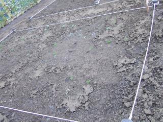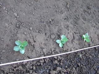 キャベツの苗を植えている