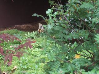 自宅前のさんしょうの木にとまろうとしている。(どこから出てきたのかしら?)