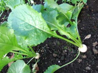 朝 収穫した”かぶ”の浅ずけで~す。春菊とほうれん草も大きくなっていました。