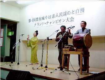 本日 1/13(金)午後6時30-「豊見城そば」恒例!!<素人のど自慢>年間グランドチャンピオン決定大会!!開催します司会は管理人です毎月「豊見城そば」で素人とはいえ、プロ顔負けの三線&唄自慢大会でチャンピオンになった12組(各月チャンピオン1月ー12月)のみなさんんが一同に揃い2005年度のチャンピオンを決定する大会がありますゲストライブや豪華景品(入場者へ抽選でプレゼントがもりだくさん!)が人気の「沖縄そば屋」さんが主催する貴重で楽しい唄会へ遊びにきませんか?本日入場料は1700円です会場は豊見城市真玉橋387-1沖縄県アカデミー専門学校別館ホールです下記は去年度(2004年度)の模様です(^^)なかなか楽しそうでしょう! 今年のゲストにはもうすぐ発売になる話題のCD「沖縄そば屋さんのBGM」というユニークなCDに「沖縄そば大好物」という曲で参加して話題の新垣世達(あらがきせいたつ)さん&新垣小百合さん(世達さんの娘さん)も唄いますよー(^^)沖縄そば屋さん主催だけあって話題の唄もきっと聞ける?はず(^^)このCDは1/25発売です!! 沖縄そば屋さんのCD案内&通販HPまた「豊見城そば」といえば具志堅京子さんがおかみさんですのでもちろん京子さんの唄もありますよー先日もそばを食べにいったらこんな格言が新しく店内にあるのを発見しました 豊見城そばのそばは最高!と歌っていますさーそんなそば屋で展開される唄自慢大会地元沖縄ならではのイベントへどうぞおまちしています