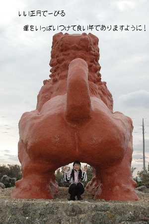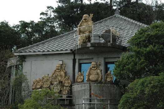 すごい!急ブレーキで写真を撮ったよ。今まで何度もこの道を通っていてもなぜきがつかなかったのか不思議昨日偶然親しい仲間から大黒様の話を聞いたから大黒様のほうで姿を現してくれたとしか思えない(@@;)みたことありますか?こんなにずらーーーと大黒様のいる一般の家です!!と思ったら布袋様ダー(^^;)でも最高の笑顔ですよね!目を疑いカメラでさらにUPを撮ってみましたなんと幸せな笑顔なんでしょう!!沖縄は今度の日曜日が旧正月で土曜日が「としのゆーる」という大晦日でーすこんな幸せいっぱいの笑顔をみたら2006年はいい年になるはずね!みなさんに幸福を笑顔で送る大黒様だらけのこの家の方に感謝!!どこかはーーどうかご自分で出会ってくださいねなんとも感激しますよもちろんこの家は沖縄本島にあります今日は幸せ予感日でした(^^)